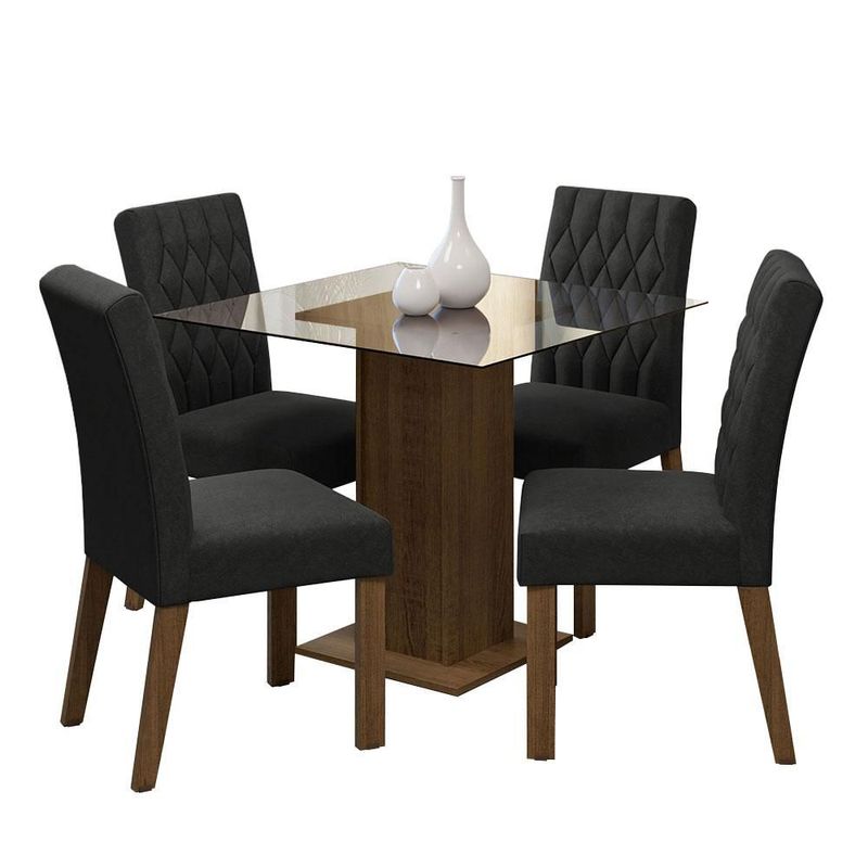 Juego de Comedor Mesa de Vidrio + 4 Sillas Marrón/Oxford Madesa
