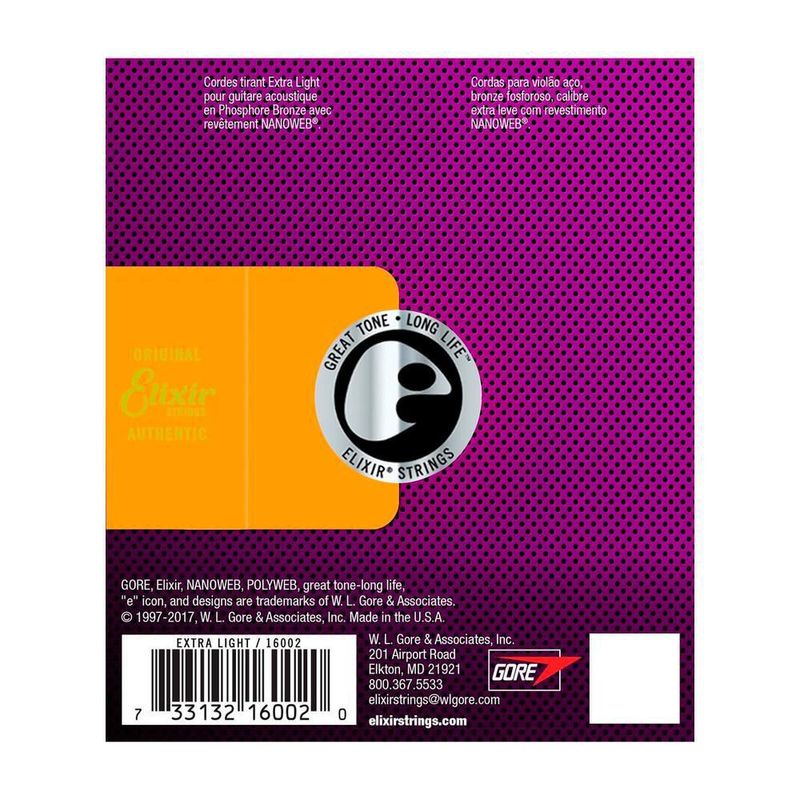 Set de cuerdas para guitarra acústica elixir 16002 nanoweb coating