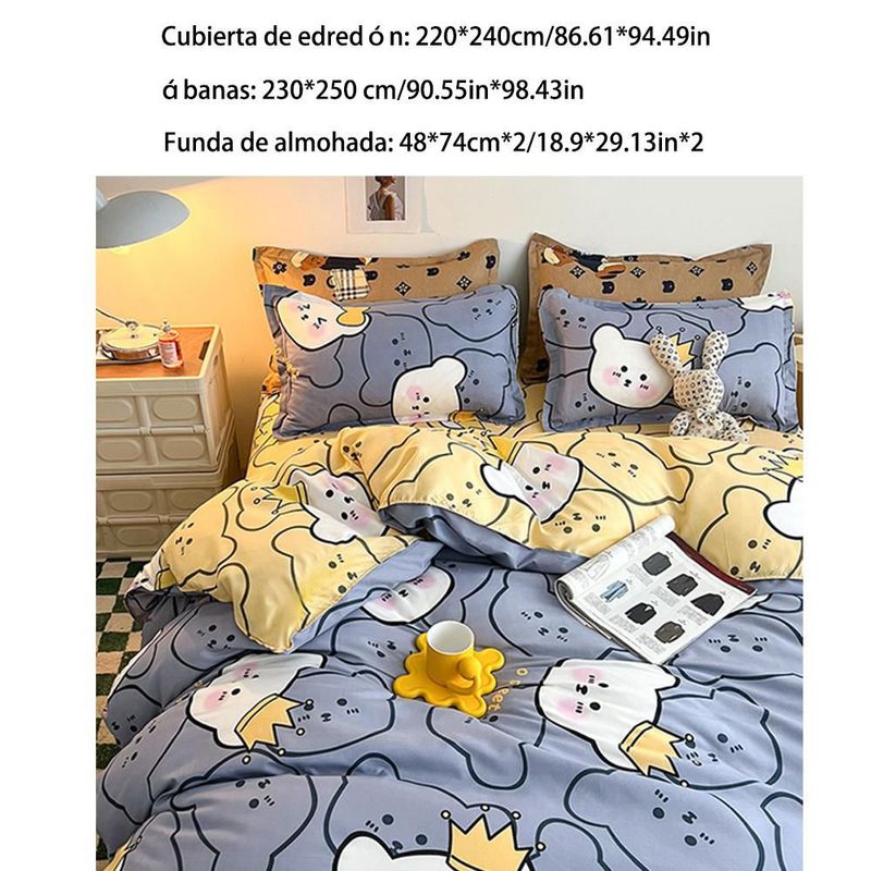 Juego de Funda para Edredón de 4 Piezas - Ultra Suave Fibra de Doble Cepillado - Cierre de Botones y 2 Fundas para Almohada,HOGAWAY
