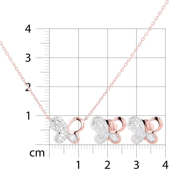 JUEGO DE GARGANTILLA Y BROQUELES DE MARIPOSA ORO ROSA 14K CON 17PTS DE DIAMANTE