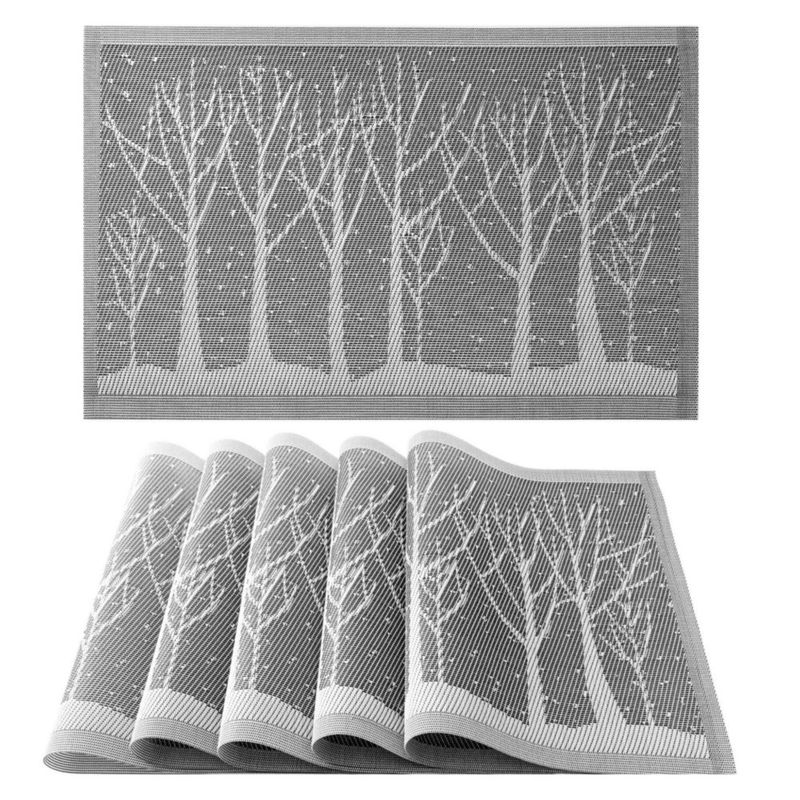 HogarMesaTextiles de mesaJuego de Manteles Aquila Individuales 6 piezas Arboles Plata