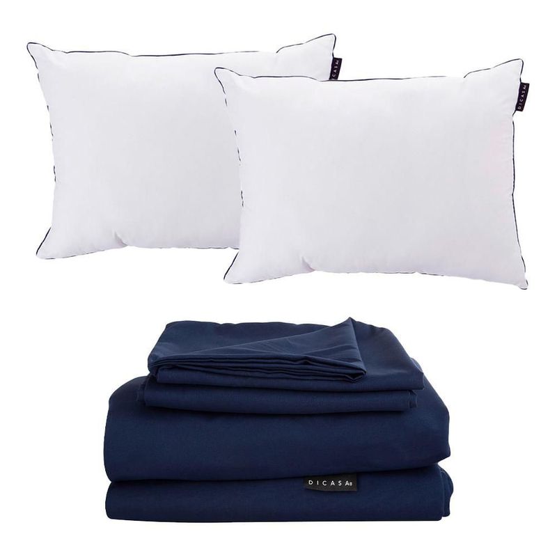 Juego de Sábanas Matrimonial Softy Azul Marino + 2 Almohadas One CZD