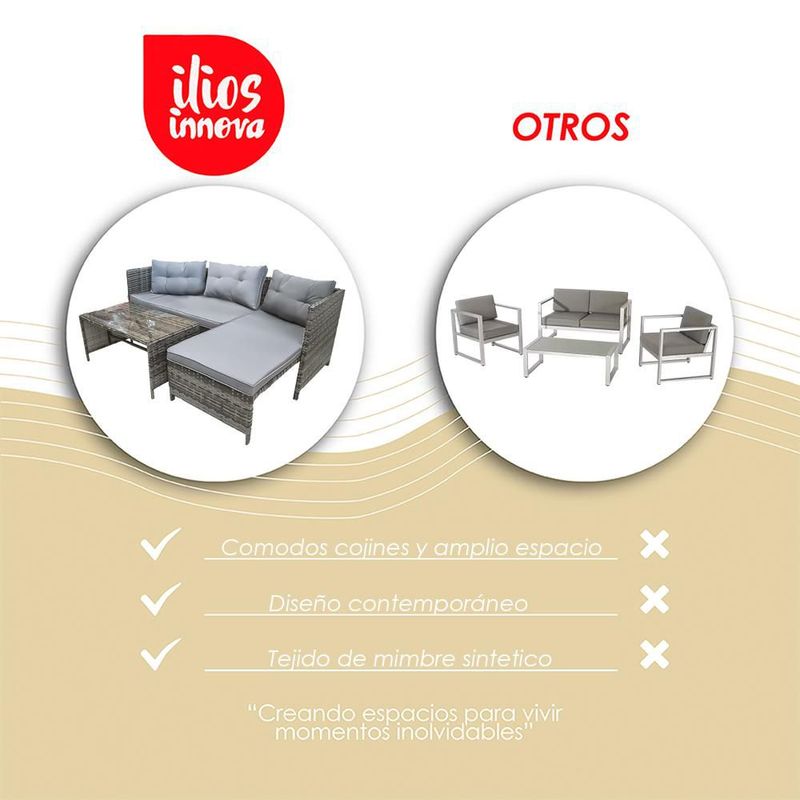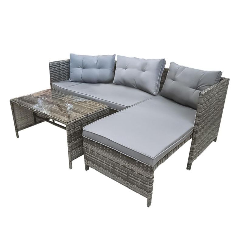 Juego de sala para jardin esquinera de mimbre exteriores (Gris)