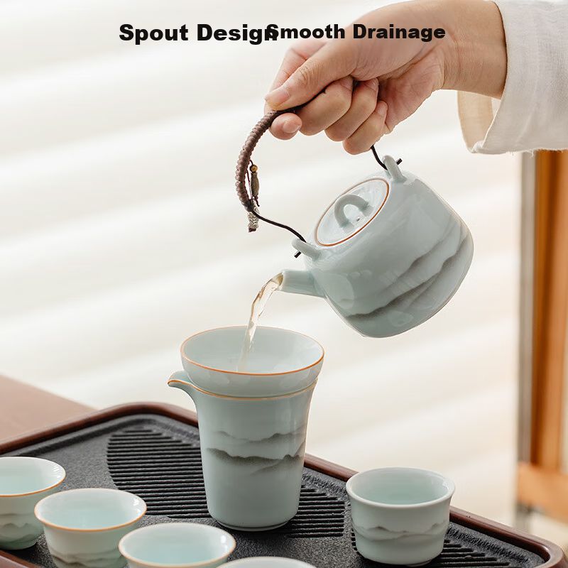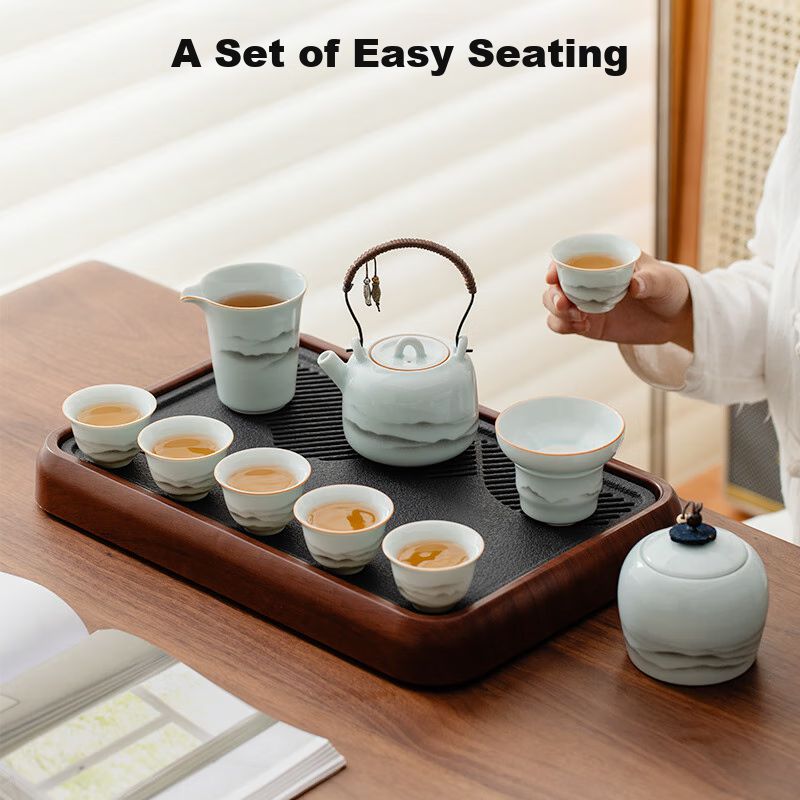 Juego De Té Yingqing Moshan 12 Piezas Porcelana Con Bandeja Y Tetera