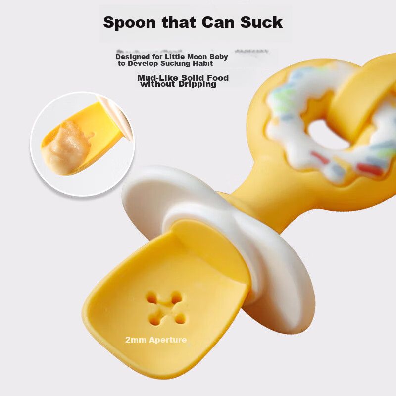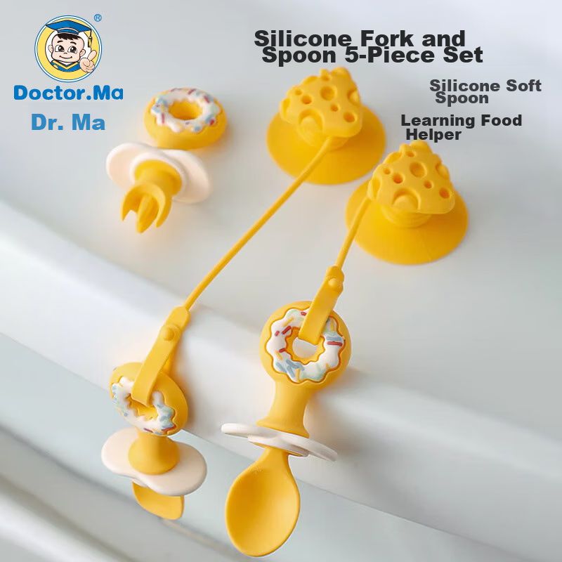 Juego de Tenedor y Cuchara Silicona DOCTOR MA Sweet Donut Amarillo para bebé
