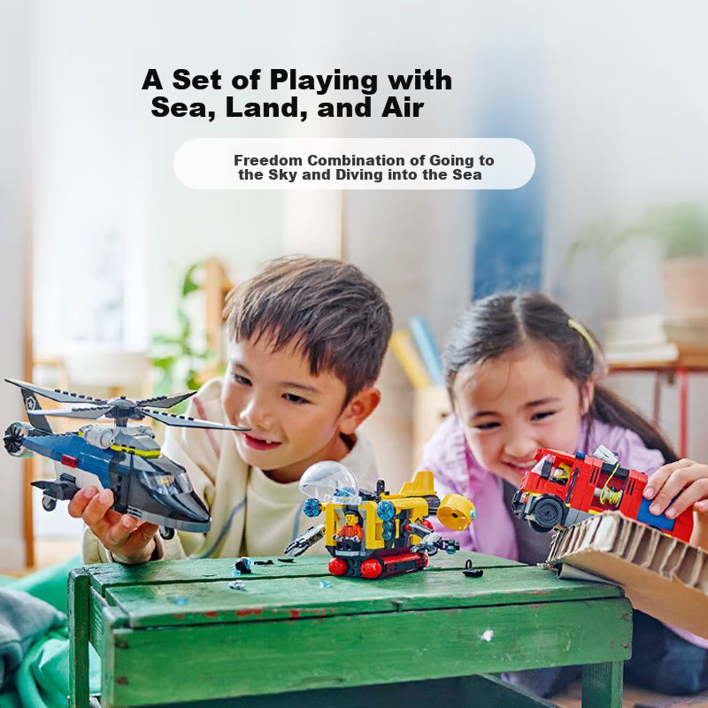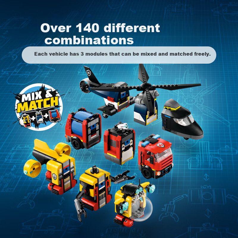 Juego LEGO CITY 60462 de helicóptero camión de bomberos y submarino para niños