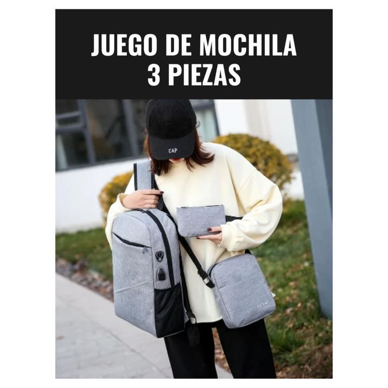 Juego Mochila 3 Piezas de Viaje, Entrada de USB Para Batería