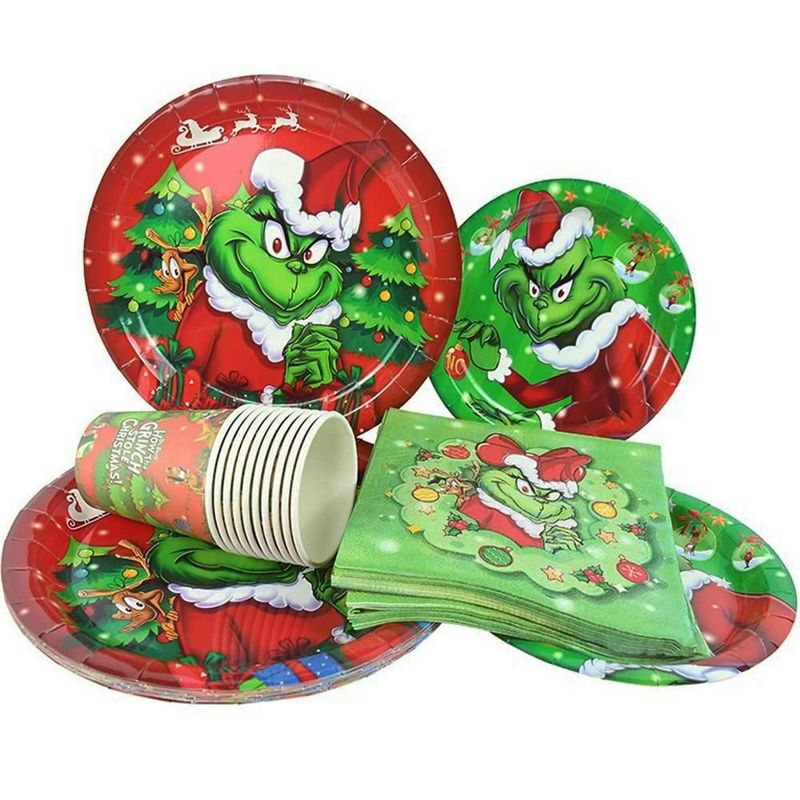 HogarDecoraciónAdornos de NavidadJuego Navideño Vajilla Servilletas MXDXG-006 DinnGrin Juego Navideño de Vajilla Vasos