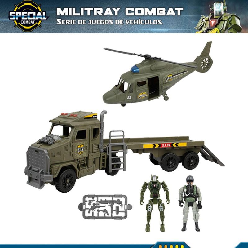 Juguete Camión Militar con Helicóptero y Figuras de Soldados Incluidas con Armas