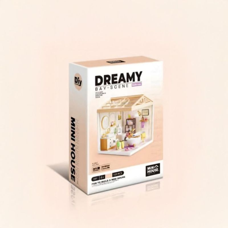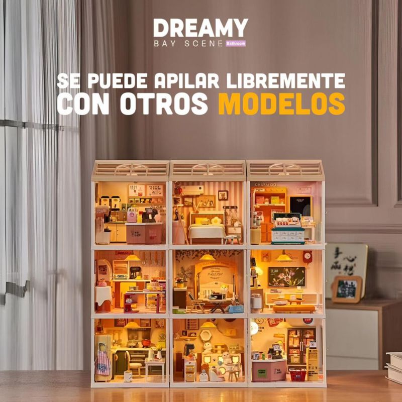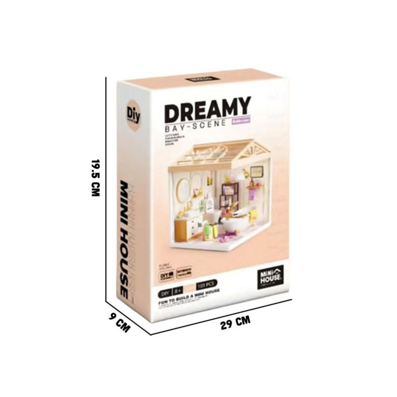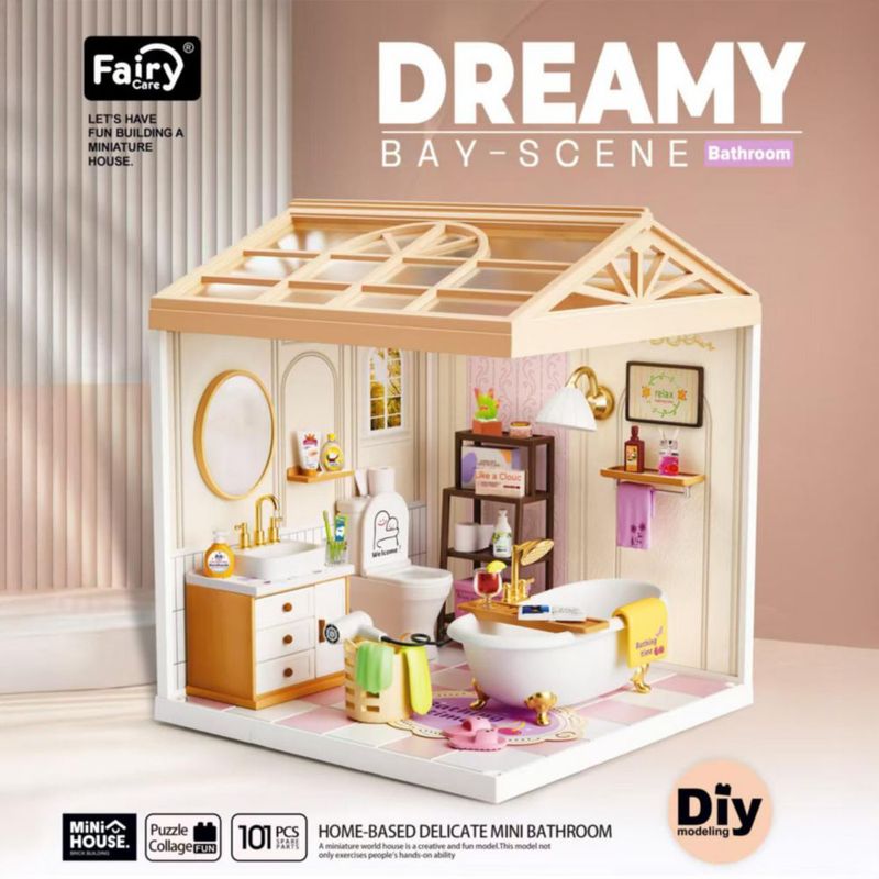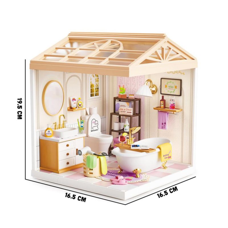 Juguete Casa en Miniatura Baño con Bañera, Muebles, Accesorios y Efecto de Luz Nocturna