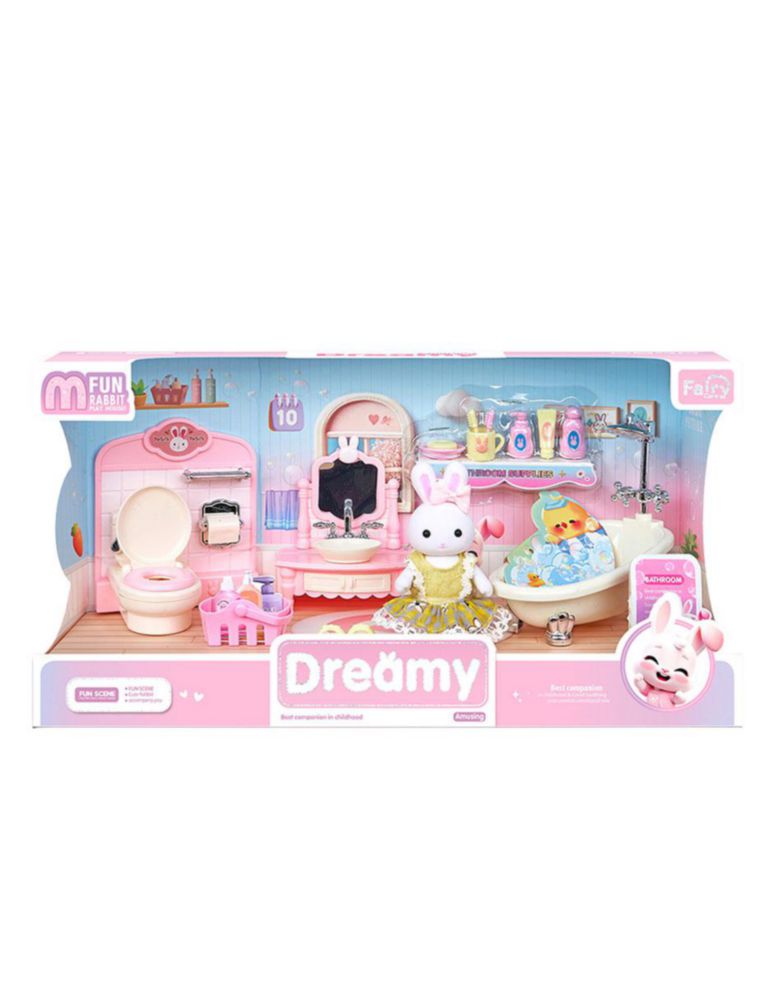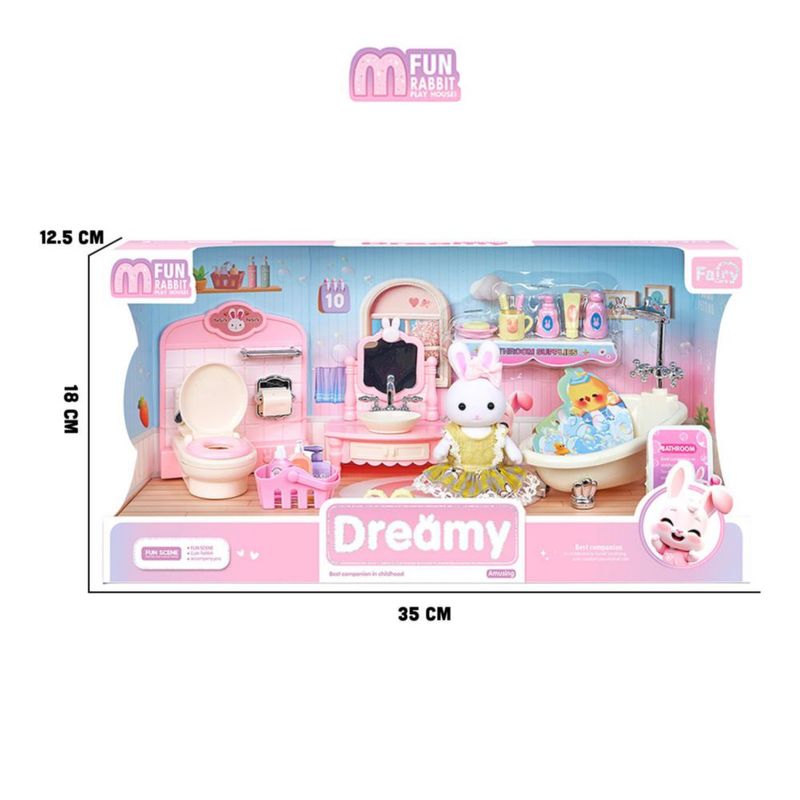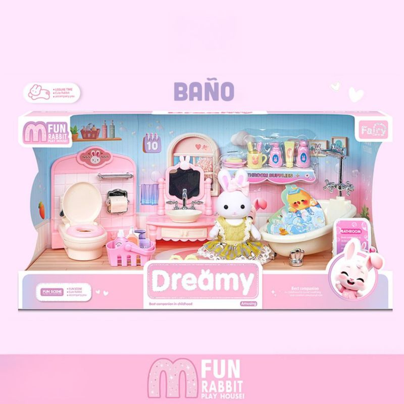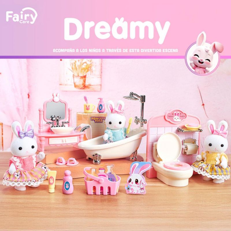 Juguete Set Casa de Muñecas Baño Dreamy con Muebles, Accesorios y Conejitos Incluidos