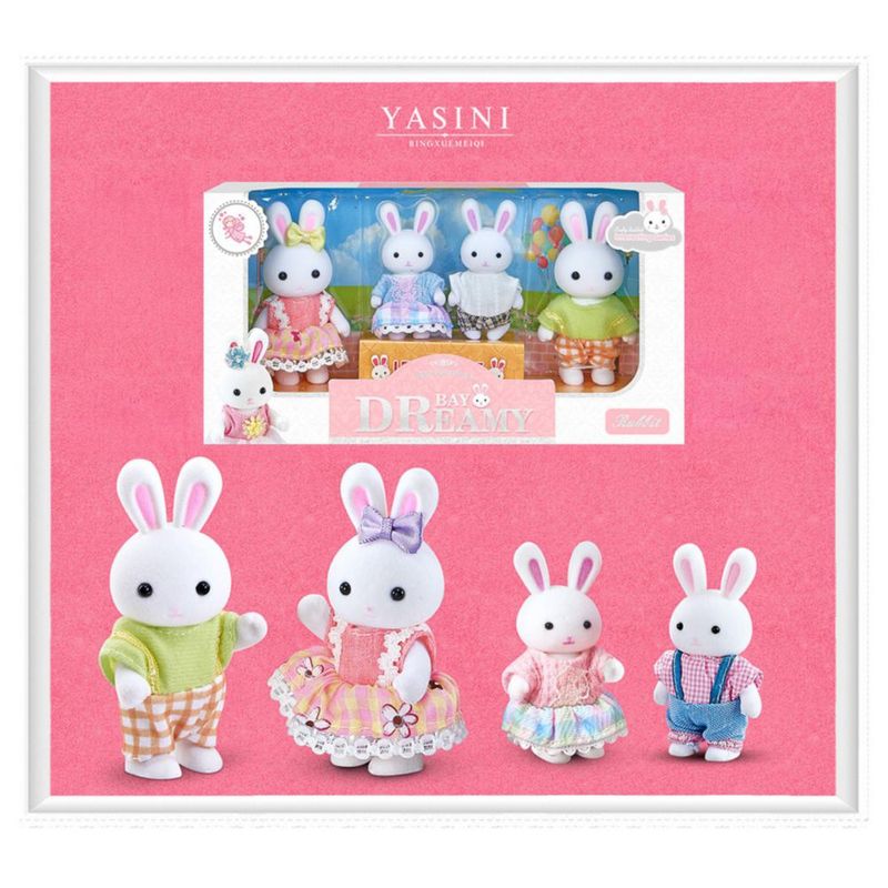 Juguete Set de 4 Conejitos Dreamy con Ropa Intercambiable y Detalles de Moda