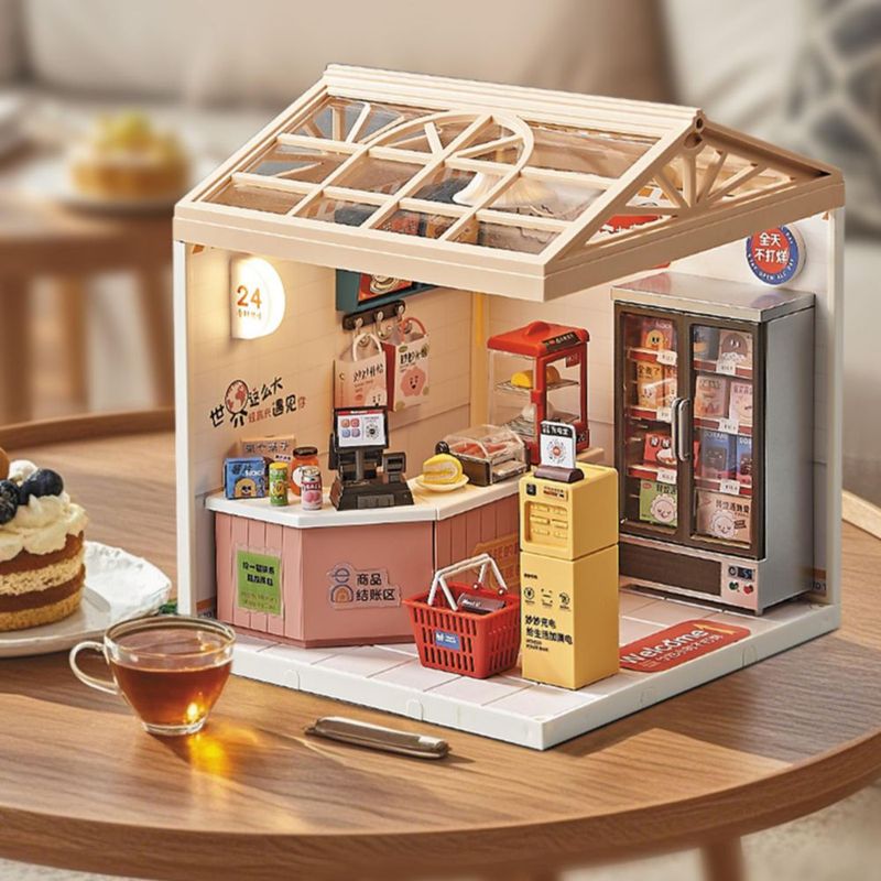 Juguete Supermercado en Miniatura 24 Horas con Accesorios y Luz Nocturna