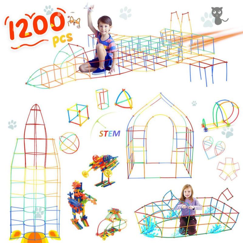 Bebés y juguetesJuguetesFiguras de AcciónJuguetes de construcción de paja Ggiibro, juguetes de construcción STEM, 1200 piezas, juguetes para niños de 3, 4, 5, 6, 7 y 8 a