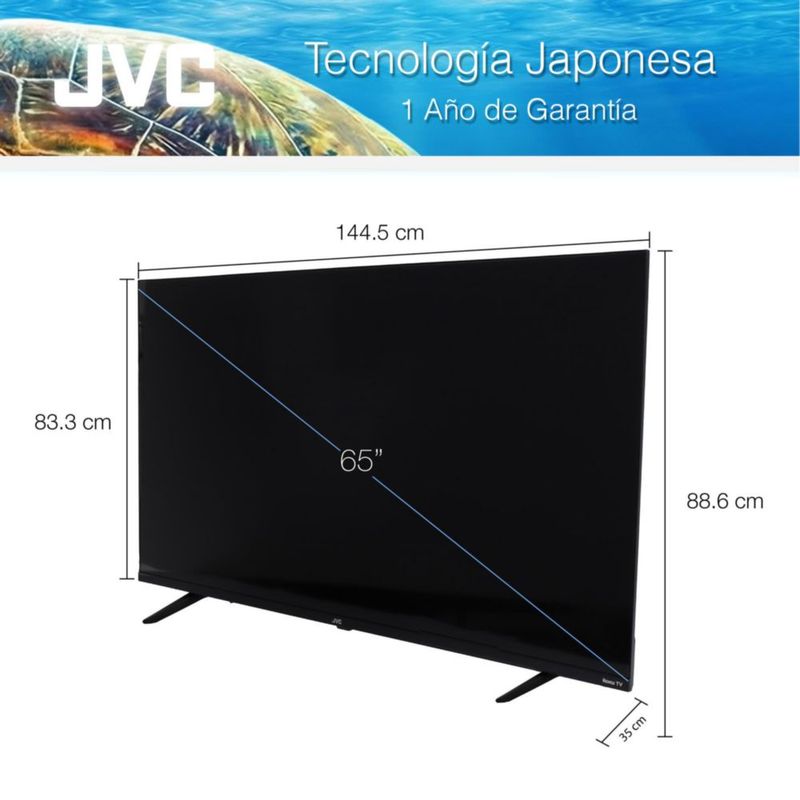JVC Pantalla Televisión Smart TV 65 Pulgadas LED 4K UHD Roku Frameless Dolby Audio 4 HDMI 2 USB 1 AV SI65URF