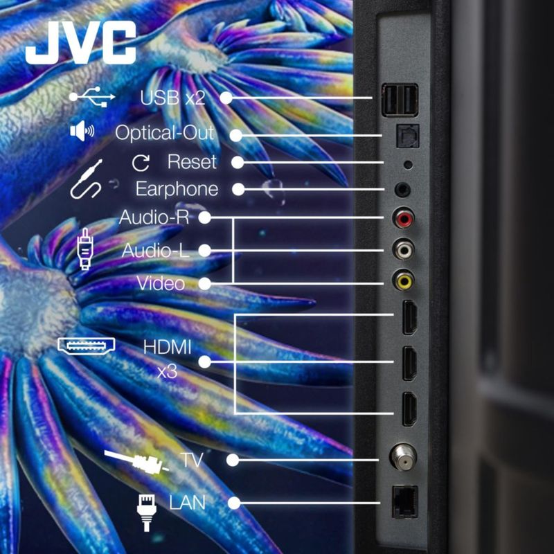 ElectrónicaTv y videoPantallasJVC Pantalla Televisión Smart TV 75 Pulgadas LED 4K UHD Roku Frameless Dolby Audio 3 HDMI 2 USB 1 AV SI75URF