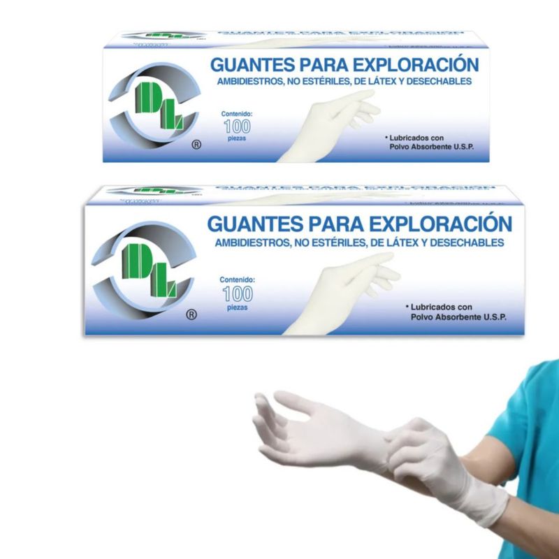 KIT 2 GUANTES DE LATEX PARA EXAMEN NO ESTERIL MEDIANO C/100PZ
