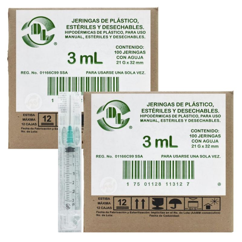 Salud y Equipamiento MédicoFarmaciaBotiquínKIT 2 JERINGA DL 3ML 21G X 32 MM C/100PZ