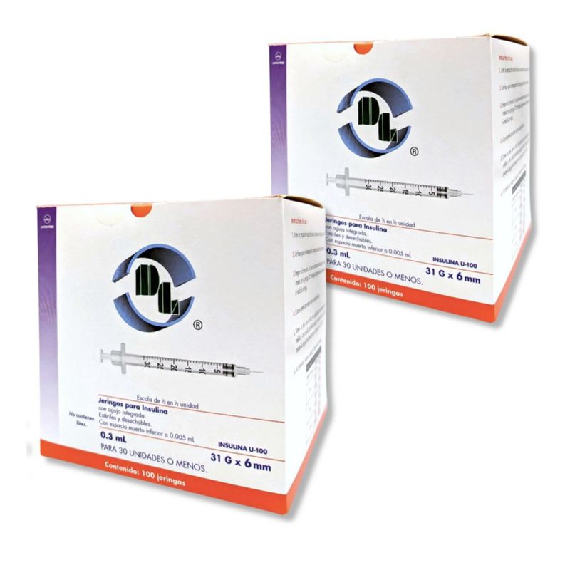Salud y Equipamiento MédicoFarmaciaBotiquínKIT 2 JERINGA INSULINA DL 0.3 ML 31GX06MM C/100PZ