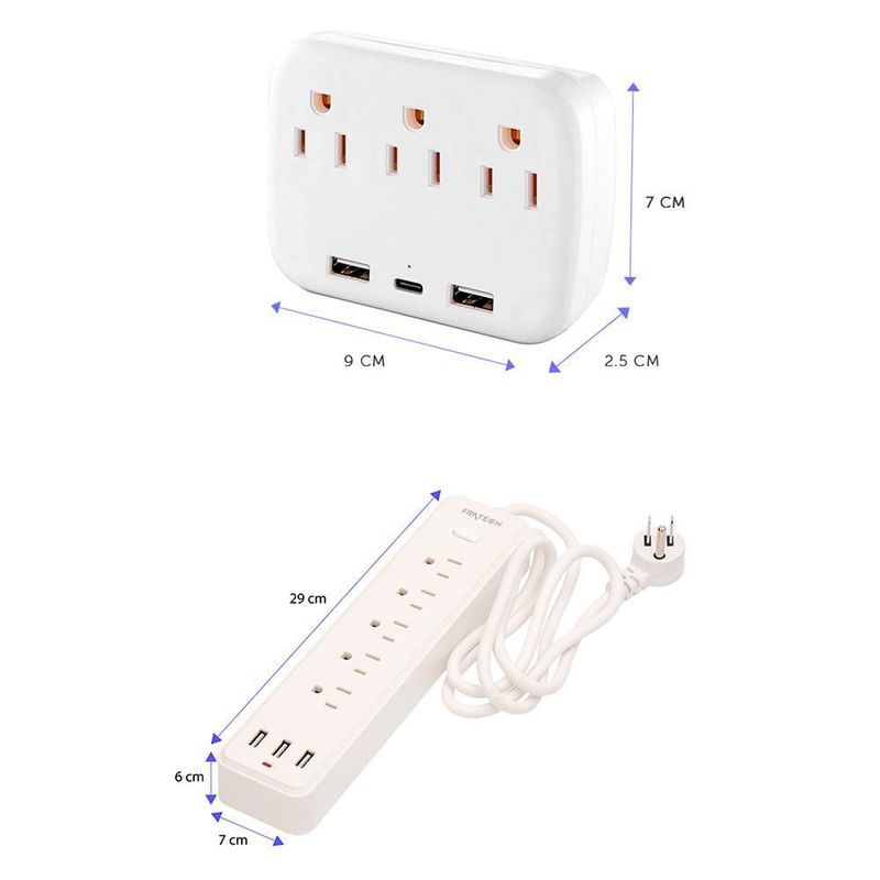 Kit 2 multicontactos Fratech portátiles con entradas USB para carga de dispositivos, EL10 y L02