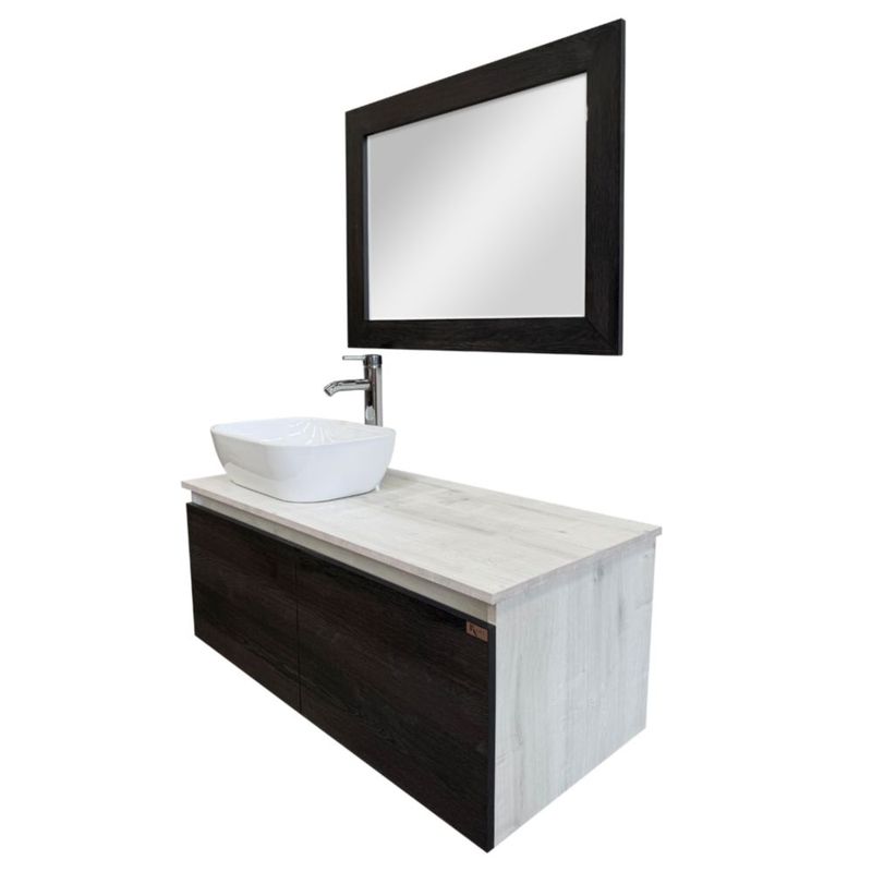 Kit Mueble Para Baño 4 en 1 Empotrable Picasso Lavabo Cerámica Monomando Alto Espejo 2 Cajones
