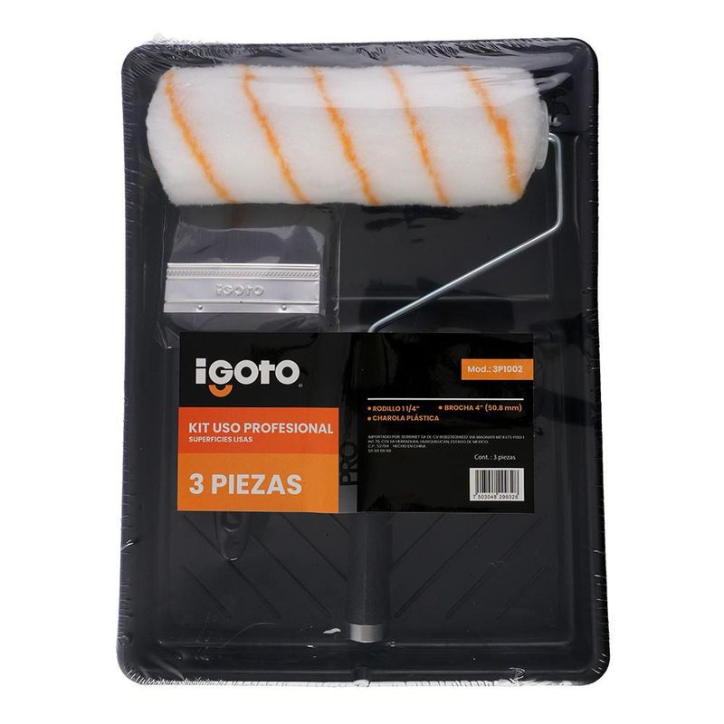 Kit Set Charola, Brocha 4’’ y Rodillo de fibra sintética 1¼’’ Igoto