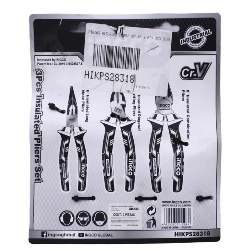HerramientasManualesCorte y DesbasteKit Set Juego De Pinzas Aisladas 3 Piezas Ingco 1000v 8 6 6 Pulgadas