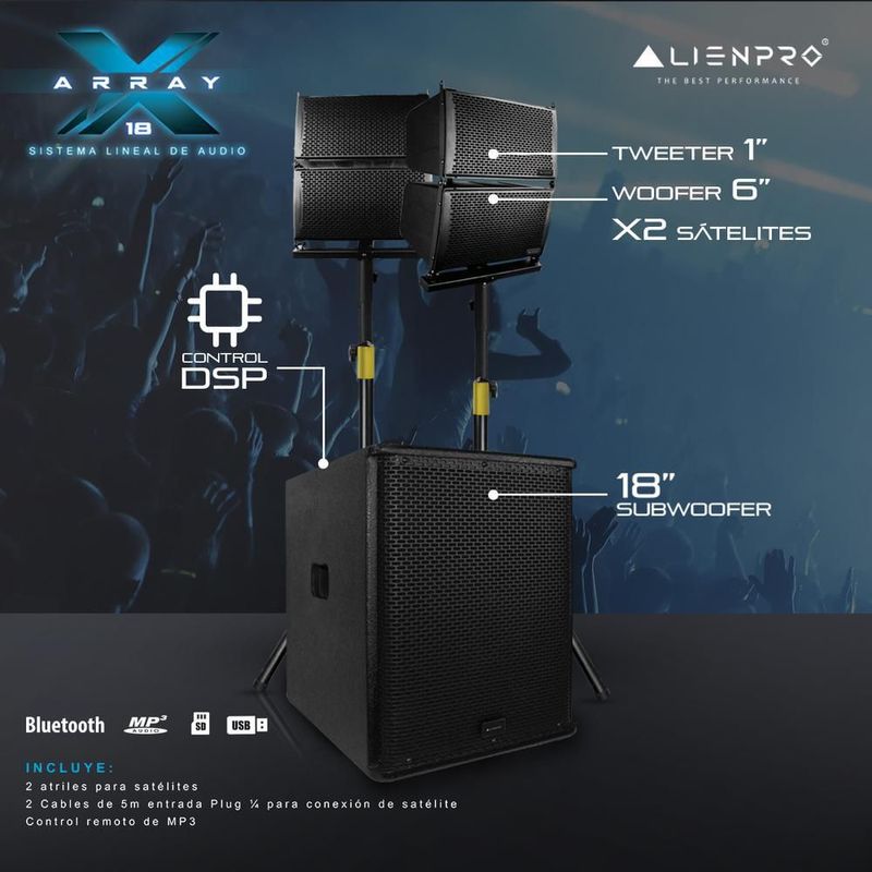 Kit sistema lineal xarray 18 alienpro mezcladora micrófonos