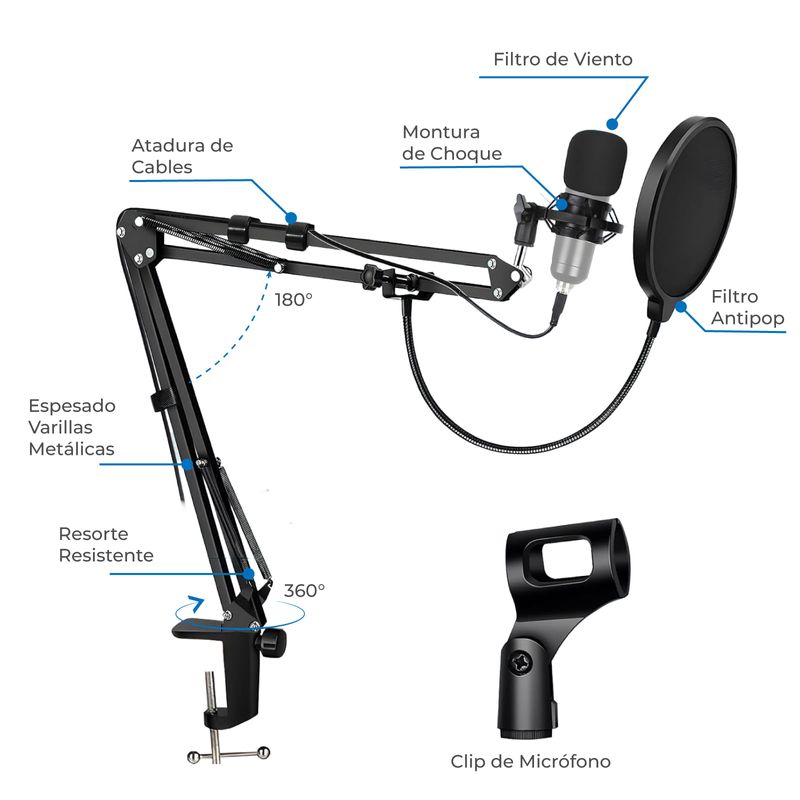 Kit Soporte Brazo para Micrófono Zonar con Accesorios Podcast Stream