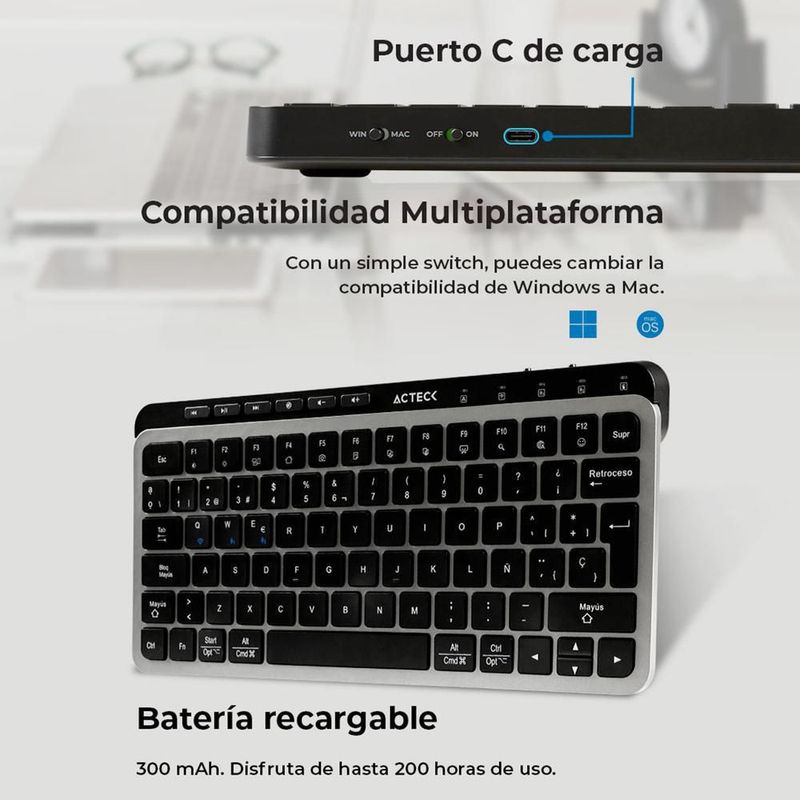 CómputoAccesorios y periféricosTeclados y MouseKit teclado y mouse acteck krea mk750 inalambrico tamaño 65%