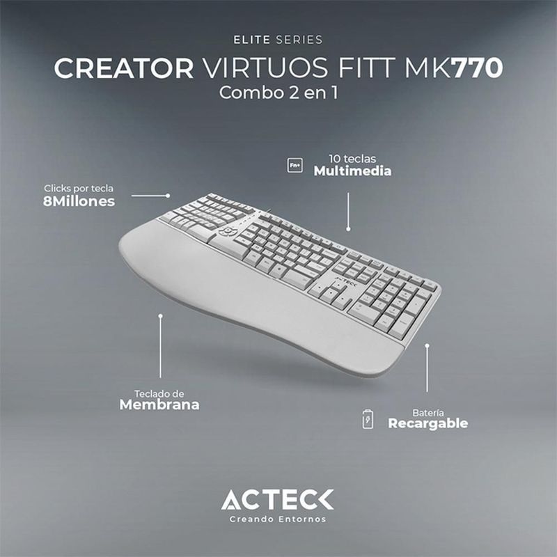 Kit teclado y mouse acteck virtuos fitt mk770 inalambrico usb-c blanco ac-936255