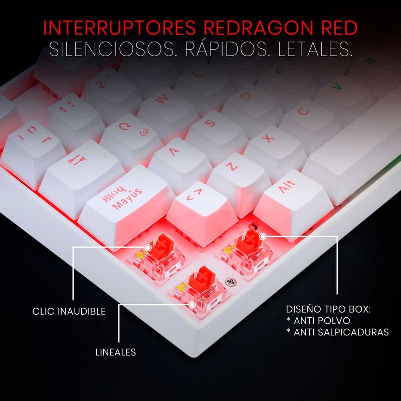 Teclado Gamer Redragon Kumara Blanco Tkl Español Red Switch RGB