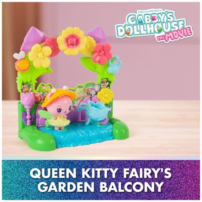 Bebés y juguetesJuguetesFiguras de AcciónLa casa de muñecas de Gabby: La película, Balcón del jardín de la hada Queen Kitty, con figura de juguete y accesorios para la c