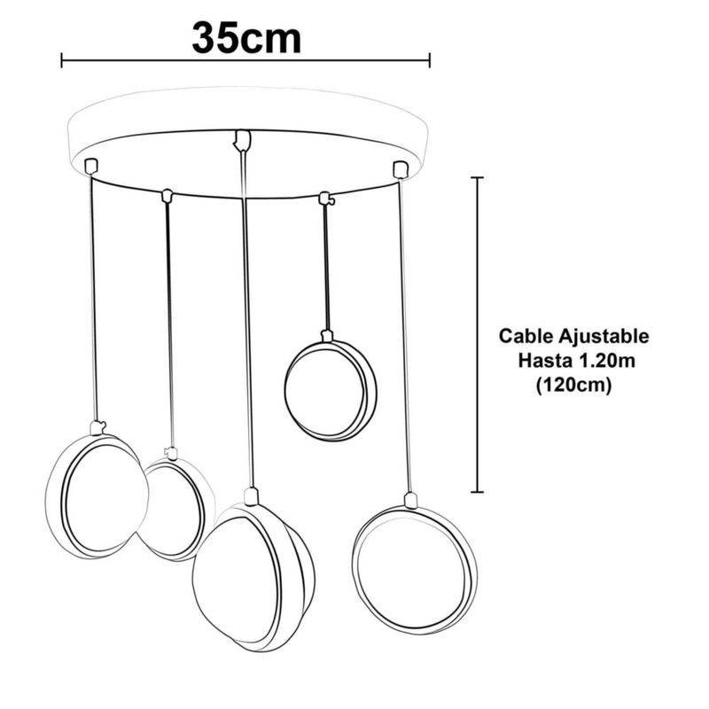 Lampara Colgante Luz Ideal, Saturno 5 Luces 3 Tonos Luz Led.