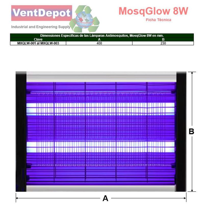 Lampara de Insectos MXQLW-002 MosqGlow 8W Lamparas Exterminadoras de Moscas