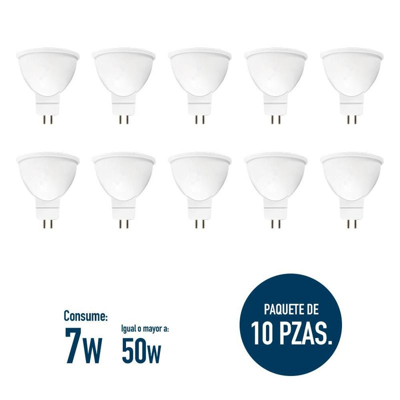 HogarPatio y JardínIluminaciónLámpara LED MR16 7W Luz Cálida 3000K Pack 10 Piezas Ahorro Energético