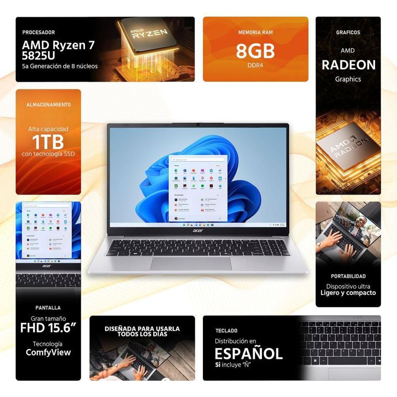CómputoPortátilesLaptopsLaptop acer aspire lite 15 amd ryzen 7 8gb ram 1tb ssd