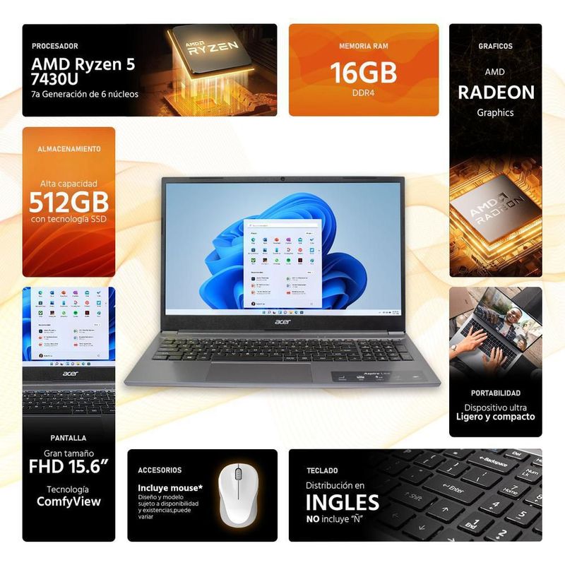 CómputoPortátilesLaptopsLaptop acer aspire lite 15 ryzen 5 16gb 512gb ssd mouse dxt
