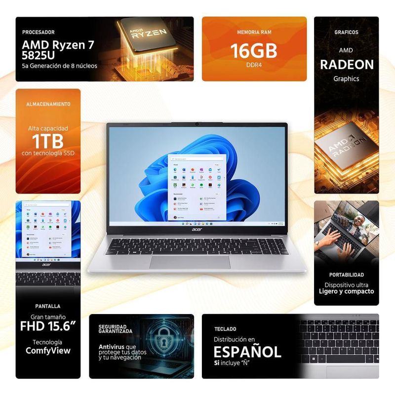 CómputoPortátilesLaptopsLaptop acer aspire lite 15 ryzen 7 16gb 1tb ssd + antivirus