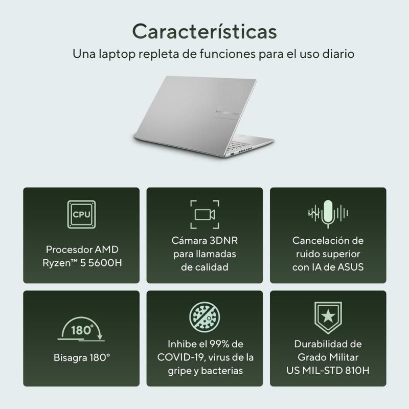 CómputoPortátilesLaptopsLaptop Asus VivoBook 15 AMD Ryzen 5 8GB RAM 512GB SSD Silver