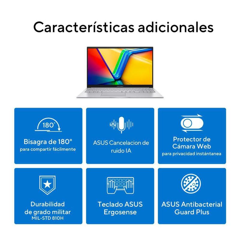 CómputoPortátilesLaptopsLaptop Asus VivoBook 15 Intel Core i5 16GB RAM 512GB SSD Silver