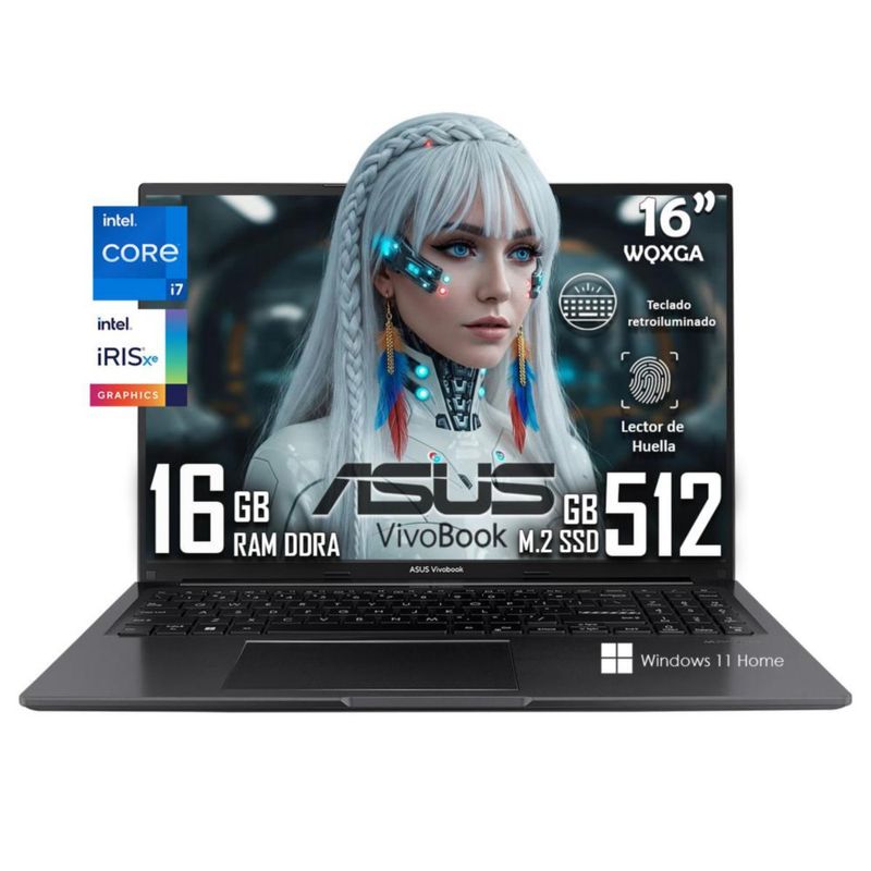 Laptop Asus Vivobook F1605v Intel Core I7-1355u 512gb 16gb Ram W11 con Teclado Retroiluminado y Lector De Huella.