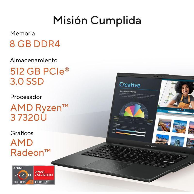 Laptop Asus VivoBook Go 14 AMD Ryzen 3 8GB RAM 512GB SSD Negra