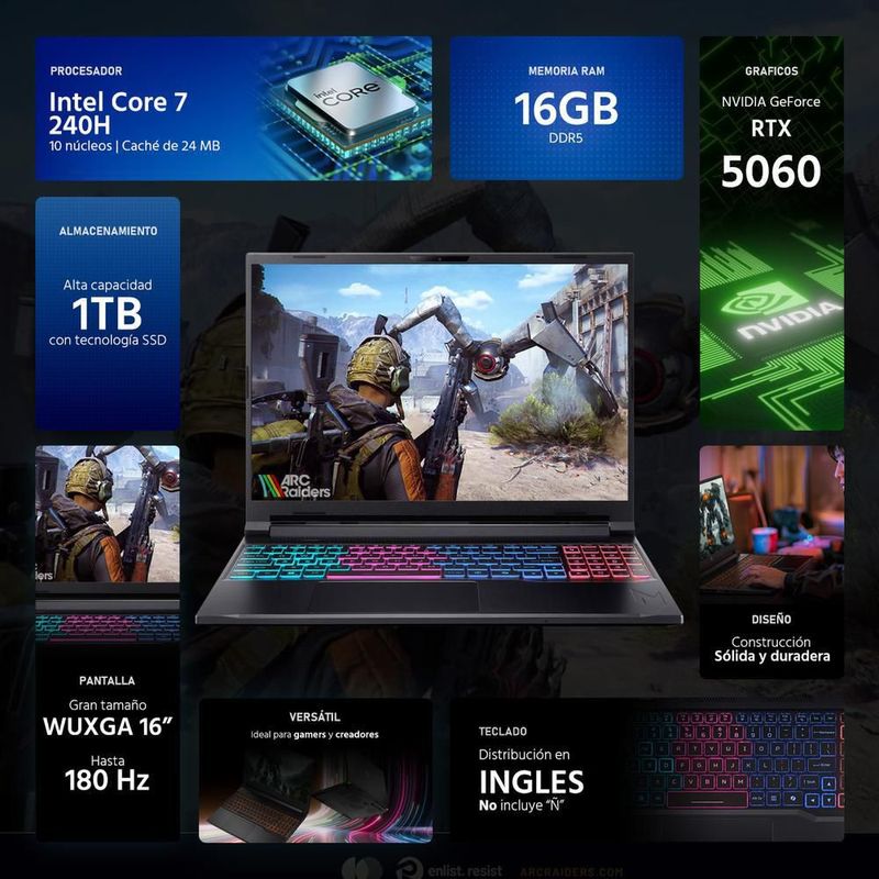 CómputoPortátilesGamingLaptop gamer acer nitro rtx 5060 core 7 240h 16gb 1tb ssd
