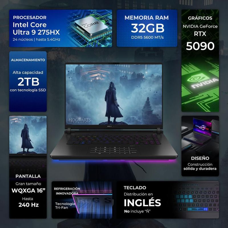 CómputoPortátilesGamingLaptop gamer asus rog rtx 5090 core ultra 9 32gb ddr5 2tb
