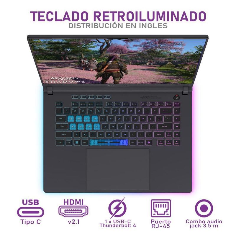 CómputoPortátilesGamingLaptop gamer asus rog strix rtx 5060 core i9 16gb 1tb ssd