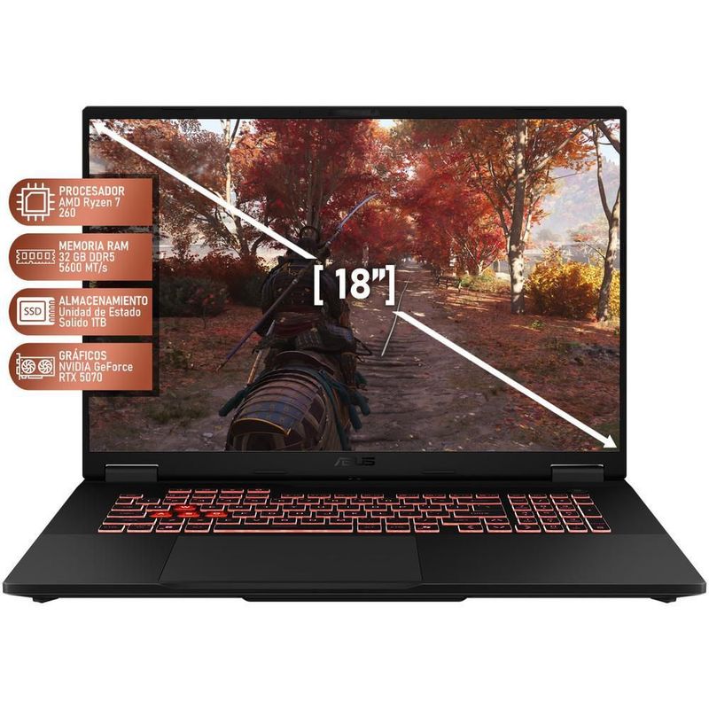 CómputoPortátilesGamingLaptop gamer asus tuf a18 rtx 5070 ryzen 7 32gb ram 1tb ssd