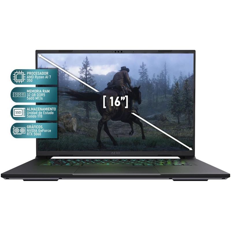 CómputoPortátilesGamingLaptop gamer gigabyte x16 rtx 5060 ryzen ai 7 32gb 1tb ssd