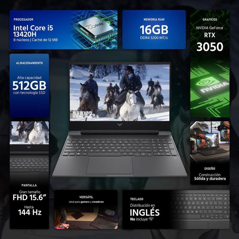 CómputoPortátilesGamingLaptop gamer hp victus rtx 3050 core i5 16gb 512gb ssd