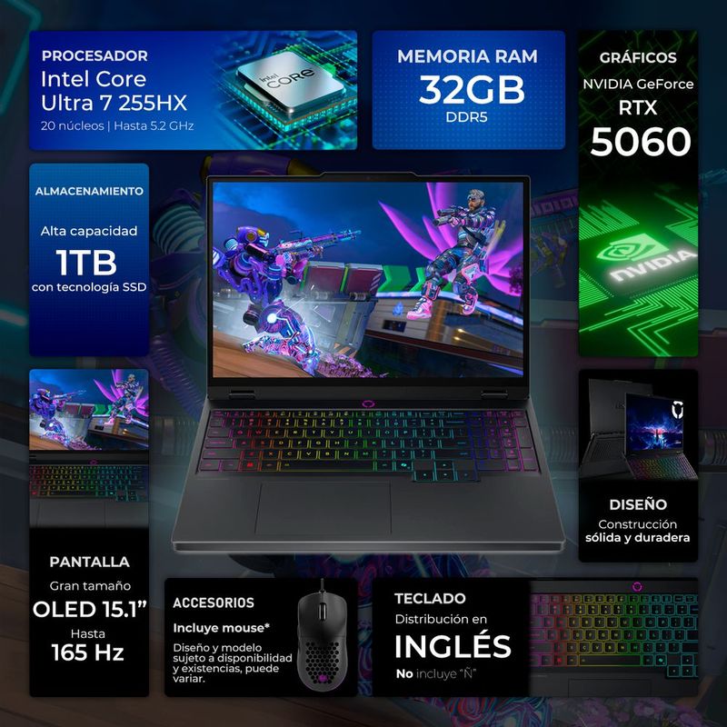 CómputoPortátilesGamingLaptop gamer lenovo legion rtx 5060 core ultra 7 32gb 1tb